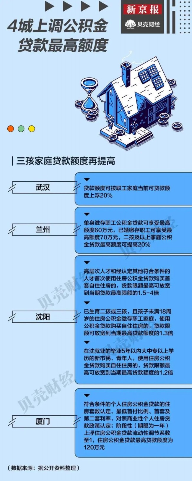 9月以來,4城上調公積金貸款最高額度,三孩家庭貸款額度再提高。