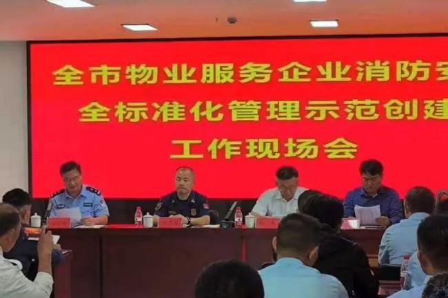 全市物業服務企業消防安全標準化管理示范創建工作現場會召開。與會人員現場觀摩了物業人員對消防安全工具的使用以及小區消防設備情況。