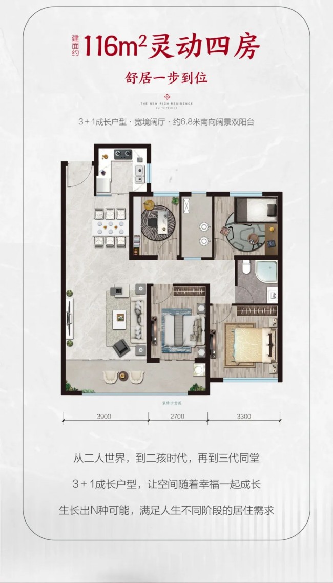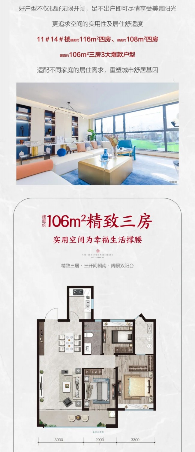 3、本宣傳資料內提到的商品房面積均為建筑面積,特別說明的除外;本宣傳資料所涉及的戶型僅供示意參考,所標尺寸面積、室內裝修設計方案僅供參考,非實際交樓衡量之基準;相同戶型因樓棟、單元或樓層不同,局部結構、面積、尺寸、管線布置等可能存在差異,具體以《商品房買賣合同》為準;