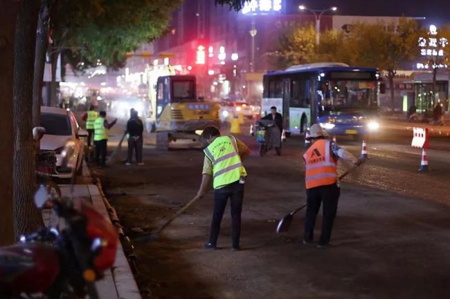 在施工期間,市住建局黨組書記、局長馬培安始終堅持 “一線工作法”,加強項目管理及組織協調,多次到現場指揮調度、現場辦公,就具體問題和施工單位進行深入探討、共同研究并提出具體要求,對施工現場情況進行盯守和指導,及時協調解決問題,確保該路段提升高標準、高質量推進。