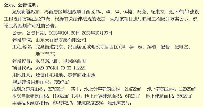 馮東、馮西居區域棚改項目西區建設工程設計方案公示、建設工程規劃許可批前公告