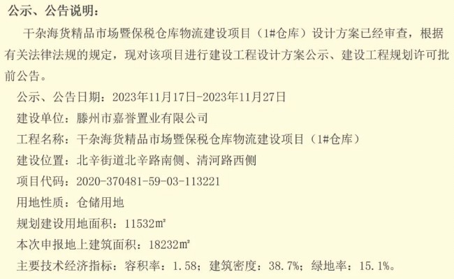 干雜海貨精品市場暨保稅倉庫物流建設項目(1#倉庫)建設工程