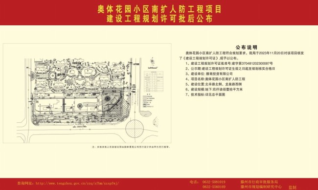 奧體花園小區南擴人防工程項目建設工程規劃許可批后公告