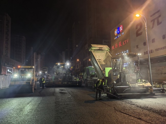 11月26日早上5點,經過滕投集團博誠路橋公司施工人員連續9小時通宵奮戰,大同路(荊河路—大同橋段)西側完成瀝青路面鋪筑,使市民出行更加便捷通暢。