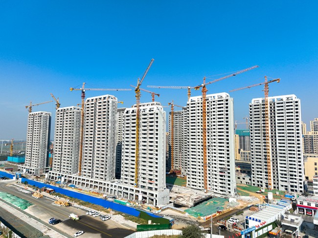 目前,3棟樓完成CFG樁基施工;2棟樓施工至6層;13棟樓已主體封頂,進入內外墻抹灰,外墻真石漆施工,公共部位鑲貼等工程階段。