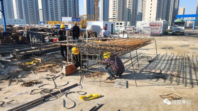 ?。ㄊ┕と藛T進行鋼筋下料與筏板基礎鋼筋布置)