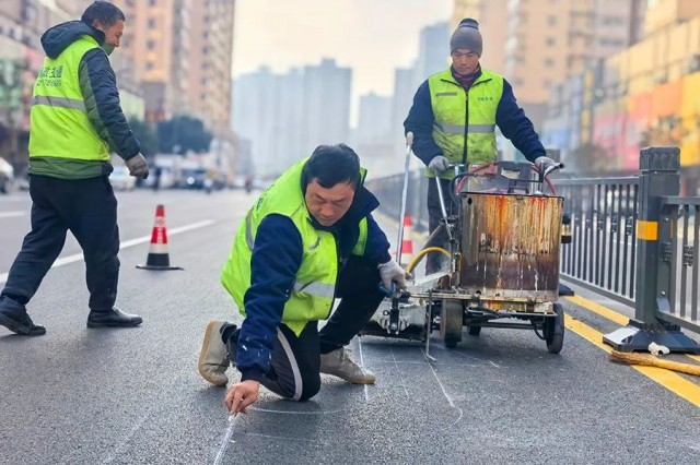 “現在提升改造完的路面寬闊整潔又大氣,斑馬線清晰明了,護欄也非常高大上,出門看到這樣的大路讓人心情很好。這么大冷的天,為辛苦勞作的工作人員點贊?!?2月19日,市民付蘭對剛剛升級改造完的大同路(荊河路-大同橋)高興地稱贊道。