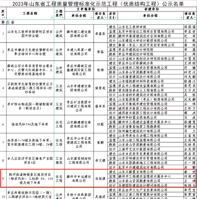 近日,由中遠公司承建的柳岸風和項目(又名:滕州市荊河街道柳樓居區域棚戶區改造項目)再傳喜訊!該項目8#、12#樓及地下車庫工程榮獲山東省住房和城鄉建設廳“2023年度山東省工程質量管理標準化示范工程(優質結構工程)”稱號。