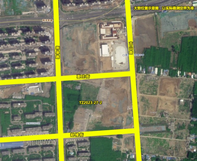 TZ2023-27-2地塊位于夏莊街南側、趙樓街北側、吉山路西側,出讓土地面積37173㎡,土地用途為居住70年商業40年,規劃指標要求:地上容積率≤2.5,建筑密度≤25%,綠地率≥35%。起始價36810萬元,按照最高地上容積率2.5計算,折合起拍樓面價約3961元/㎡。
