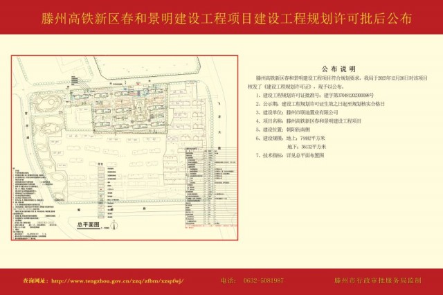 滕州高鐵新區春和景明建設工程項目建設工程規劃許可批后公布