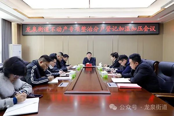 1月4日上午,龍泉街道召開不動產專項整治分戶登記加溫加壓會議。街道黨工委書記馬洪杰,黨工委委員、宣傳委員王騰,辦事處副主任李維東,相關部門、片區、企業負責人參加會議。