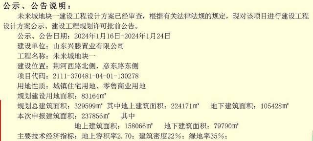 興滕·未來城地塊一建設工程設計方案公示、建設工程規劃許可批前公告