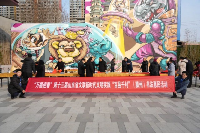 寫春聯、送春聯、送祝福是每年必不可少的文化傳承。1月21日上午,由滕州市宣傳部、文明辦、新時代文明實踐服務中心主辦的“翰墨賀歲·福滿善城·萬福迎春”新春送祝?;顒釉谏綎|興滕置業開發的興滕·未來城、柳岸風和兩項目的營銷中心現場舉行,滕州市文聯、文旅局、文化館、書法協會書畫家二十余人參加了本次活動,用傳統的書畫藝術形式,為市民群眾送上飽含真心的新春祝福。