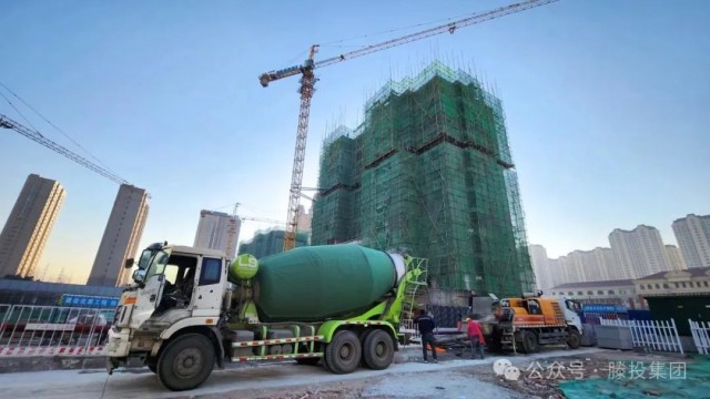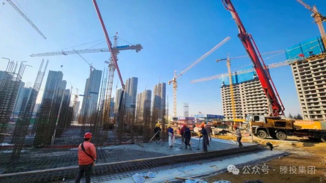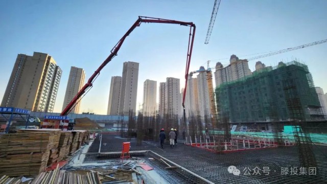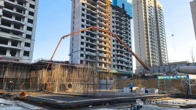 1月24日,隨著氣溫開始回暖,滕投悅府二期項目各棟號紛紛開始進行大體積混凝土澆筑作業,其中動工時間最晚的12#樓也開始了筏板基礎的澆筑,10#、14#、15#、16#、19#等棟號也紛紛進行主樓或配套車庫的澆筑作業。