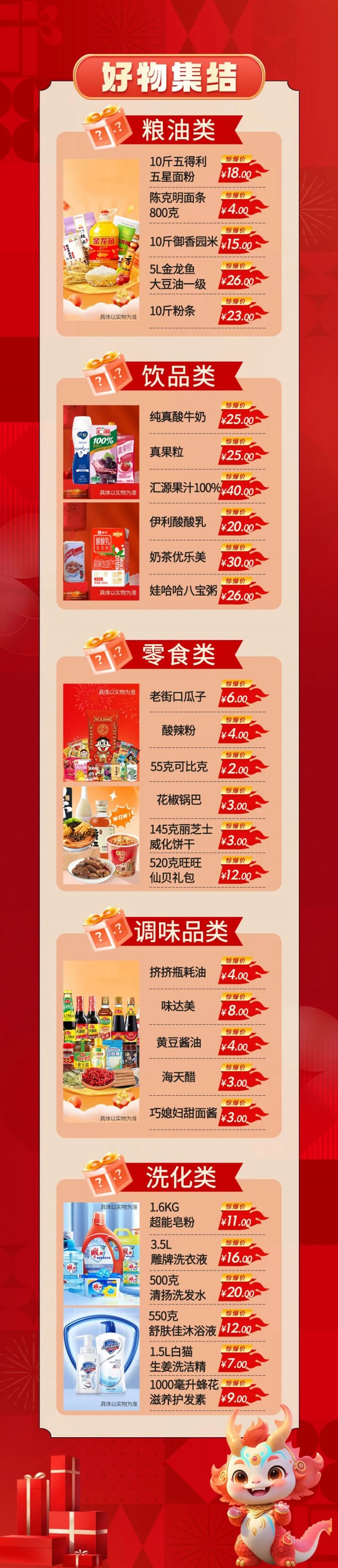 3、 活動期間,成桶類、大型包裝盒類如米、面、糧油、奶類制品、禮包類禮品每人限購1件;其他小件商品每人最多限購2件;商品價格以公示為準;