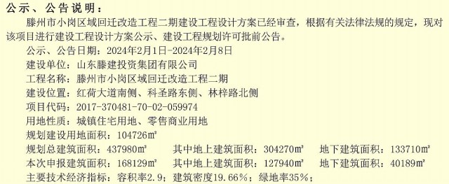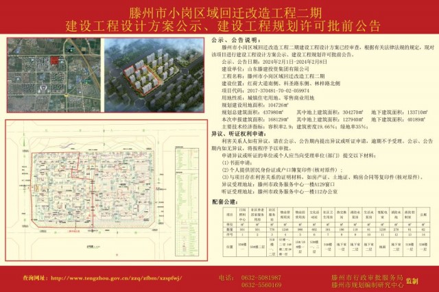 小崗區域回遷改造工程二期建設工程設計方案公示、建設工程規劃許可批前公告