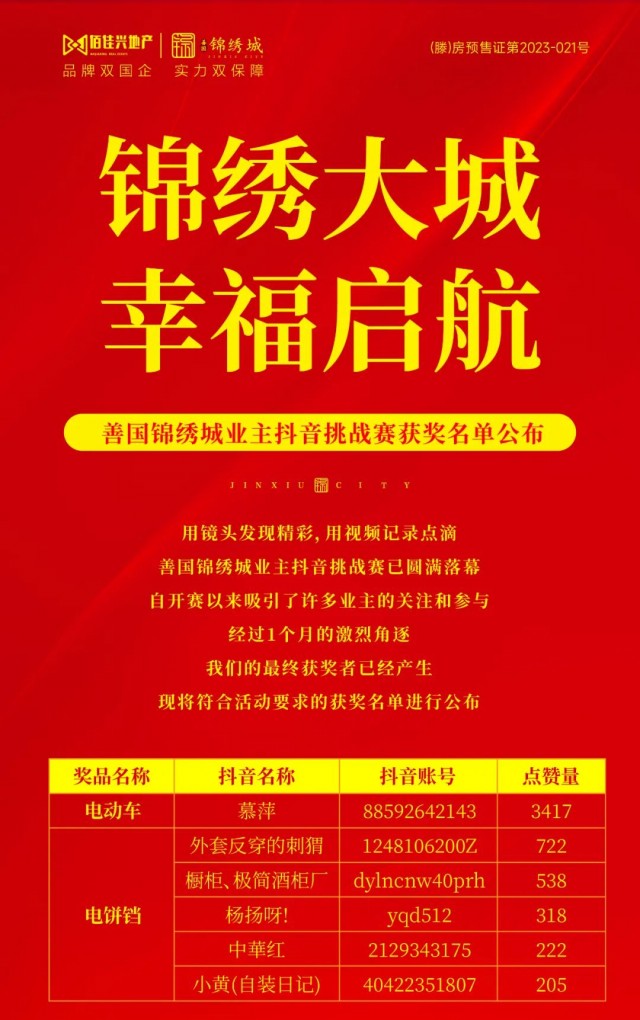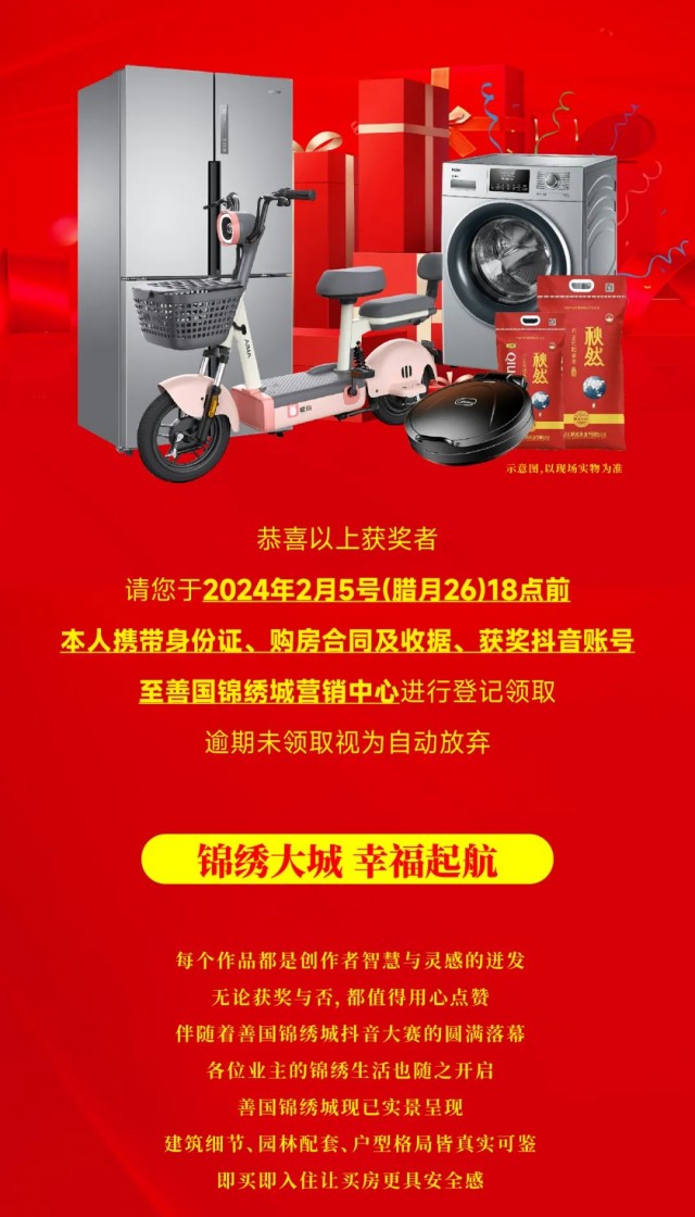 善國錦繡城業主抖音挑戰賽獲獎名單公布啦!快來看看有你嗎~