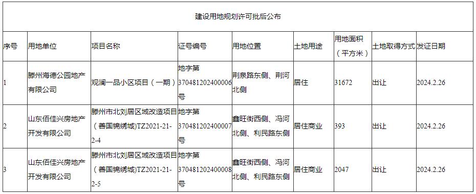 滕州市最新建設用地規劃許可批后公布,“觀瀾一品”上榜