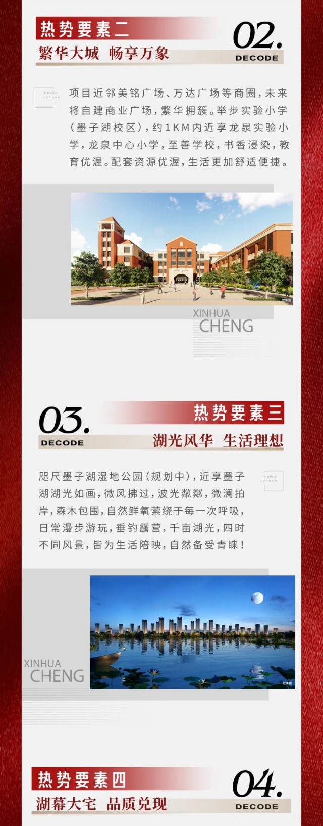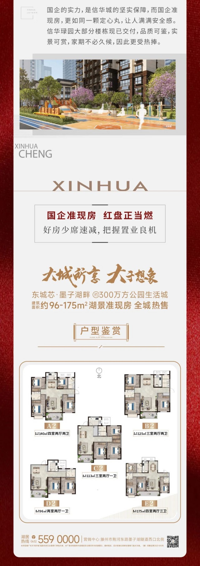 1、本項目推廣名為“信華城”,備案名稱以主管部門審批為準。本廣告所有宣傳內容描述及示意僅作為形象展示,最終規劃、設計標準以政府主管部門批文為準。