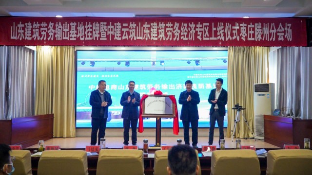3月20日,山東建筑勞務輸出基地掛牌暨中建云筑山東建筑勞務經濟專區上線儀式成功舉辦,我市設分會場組織收聽收看,并同步舉行建筑勞務輸出基地揭牌儀式。棗莊市住建局黨組成員、副局長丁善意;棗莊市住房建設事業發展中心黨委委員、副主任張偉;滕州市住建局黨組書記、局長馬培安,市住建局黨組成員、建筑業發展服務中心主任施治國等負責同志及部分建筑勞務骨干企業代表參加儀式。