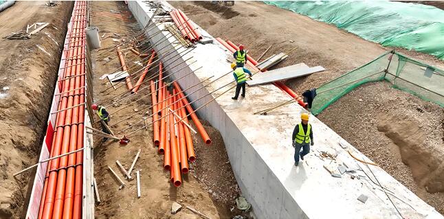 目前,青啤大道東延項目已完成西段工程的非機動車道水穩層、中間隔離帶綠化、慢車道路沿石的施工,正在進行人行道透水混凝土鋪設、兩側苗木綠化,路燈,攝像頭,標識標牌的安裝等,計劃“五一”前施工完畢。6月底前完成項目東段工程的地下各類管涵施工。