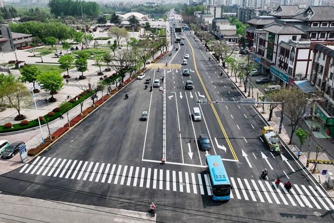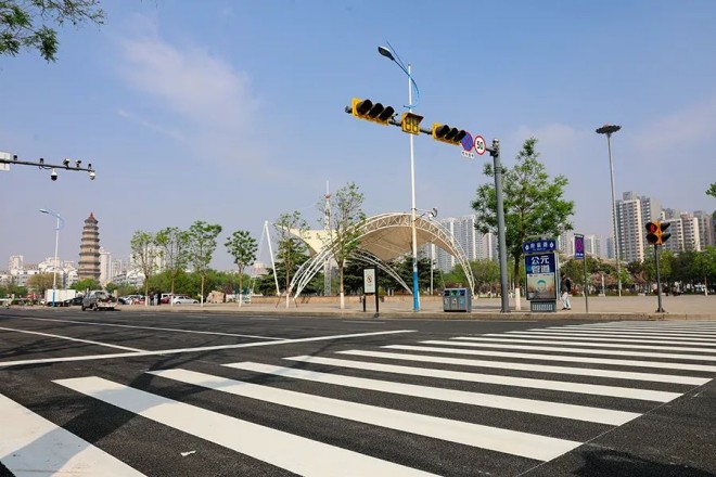 以前這邊路面高低不平,有的還出現了裂縫,現在改造完的路面整齊劃一,斑馬線施劃得清晰明了,市民出行真是方便又快捷?!?月12日,看到剛剛升級改造完的府前路(塔寺路至茂源大橋路段),附近商戶劉萌贊不絕口。