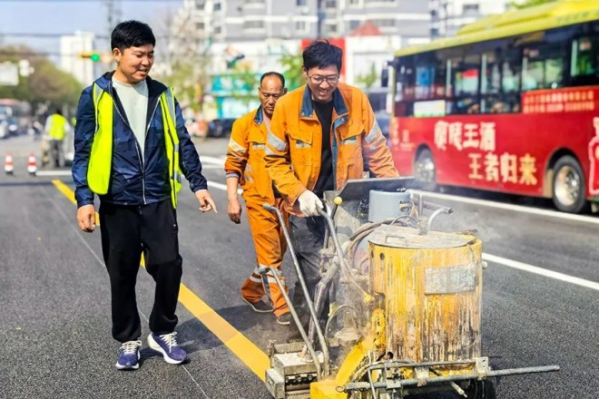 當天上午,府前路(塔寺路至茂源大橋路段)瀝青路面覆鋪工程完工,筆者在施工現場看到,工作人員正在施劃人行道標線,重新覆鋪后的路面寬闊整潔,整個路面環境煥然一新,車輛平穩有序地行駛著。