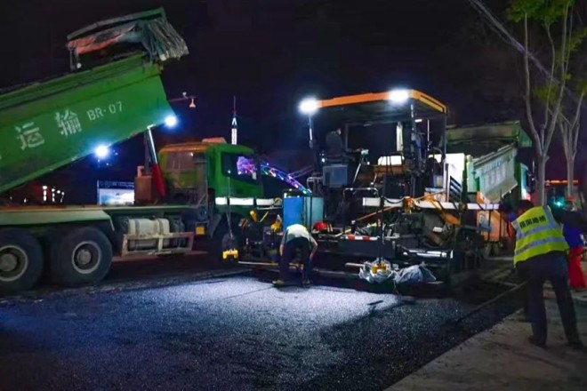 據市供銷房地產綜合開發有限公司現場負責人邱家敏介紹,該工程主要對路面瀝青面層進行覆鋪,施工前,車行道混凝土路面存在裂縫、網裂、補丁等問題。“為了不影響市民出行,市住建局組織我們在施工前期向周邊商戶、居民走訪告知,同時采取分時分段施工的方式,加大合理利用夜間施工的時長。在確保工程質量的前提下,組織工人加班加點利用4天的時間快速完工,減少對交通的影響?!鼻窦颐粽f。