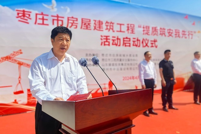4月26日,棗莊市房屋建筑工程“提質筑安我先行”啟動儀式在滕舉行。主要目的是推動全市住建系統強化質量安全責任意識,完善管理體系,健全標準體系,規范市場秩序,提升工程品質,增強監管人員、從業人員能力素質,減少工程質量多發問題,牢牢守住安全生產底線,加快推動全市房屋建筑工程質量安全管理實現新突破。棗莊市住建局黨組成員、質安中心主任尹健國,滕州市住建局黨組書記、局長馬培安,滕州市住建局黨組成員、工程建設服務中心主任劉剛及棗滕兩級單位相關負責人參加啟動儀式。