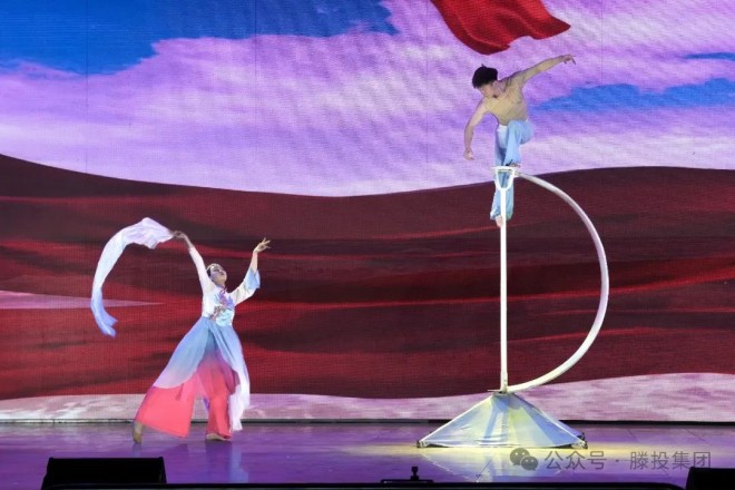本場晚會形式多樣,歌曲、舞蹈引人入勝。而音舞詩畫節目《滕投力量》用藝術的形式全面的講述了滕投集團從成立至今的工作成績。滕投集團走過了十四年的光輝歷程,留下了“以正念行穩致遠,用匠心堅守初心”的奮斗足跡;滕投人擔當奉獻,砥礪奮進,譜寫了眾多光彩奪目的壯美篇章。項目林立的背后,凝聚著滕投集團上下的積極探索和辛勤付出。
