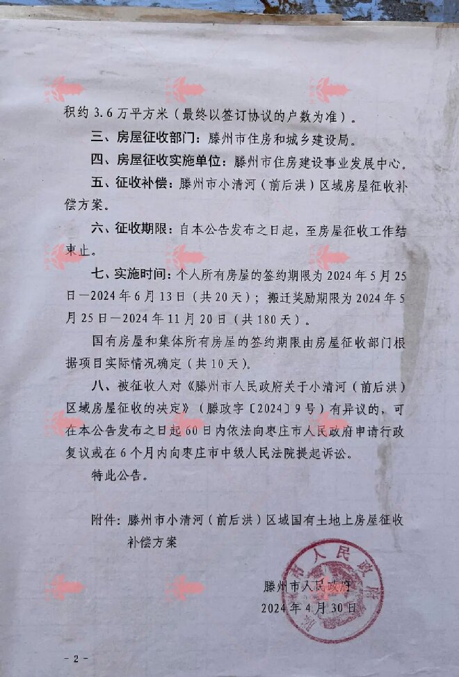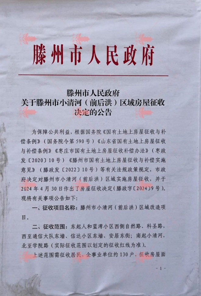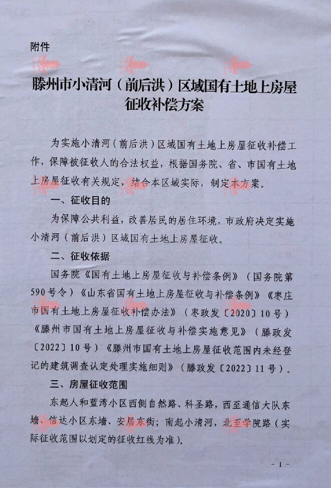滕州市小清河(前后洪)區域房屋征收補償方案及回遷戶型圖發布