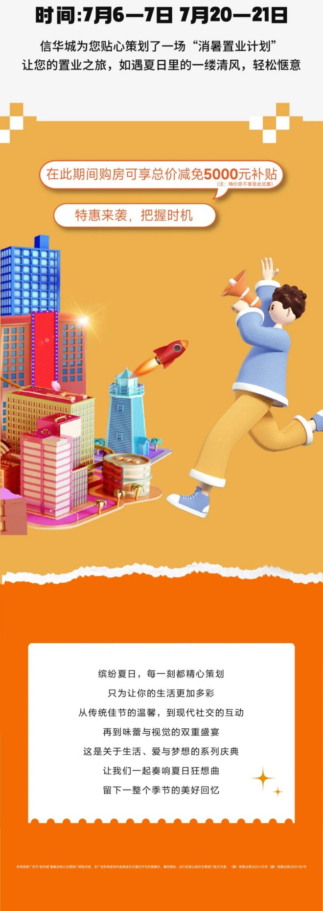1、本項目推廣名為“信華城”,備案名稱以主管部門審批為準。本廣告所有宣傳內容描述及示意僅作為形象展示,最終規劃、設計標準以政府主管部門批文為準。