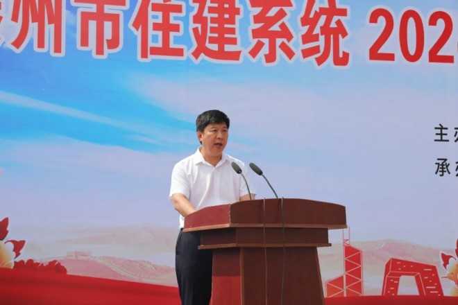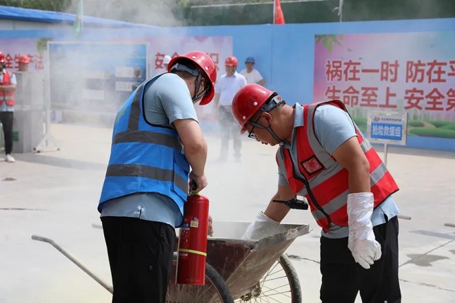 馬培安局長通報住建系統安全生產月工作推進情況,企業代表介紹了先進工作經驗。會議結束后,與會人員集中觀摩了“建設項目預防高處墜落和消防應急預案演練”。