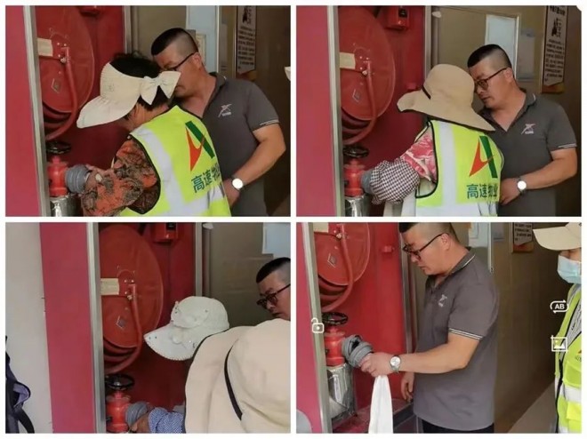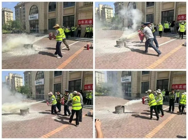 演練活動中采用情景模擬與現場實戰相結合的形式,就如何啟用報警器、滅火器、消防水泵使用注意事項進行講解與操作,確保在突遇火災的情況下,各部門第一時間進行聯動并妥善處置。全體參訓人員進行消防水泵連接、在空曠地點進行滅火器演練,員工逐一進行“滅火器滅真火”,確保所有物業人員都能熟練掌握這一關鍵技能。