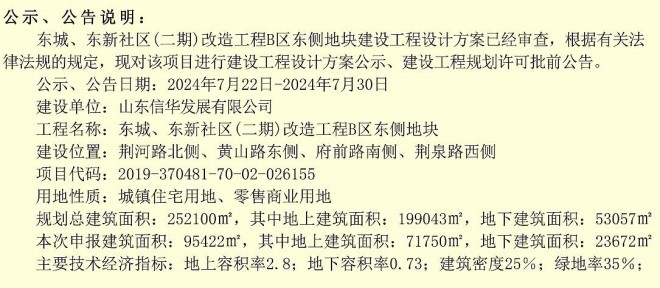 東城、東新社區(二期)改造工程B區東側地塊建設工程設計方案公示、建設建設工程規劃許可批前公告
