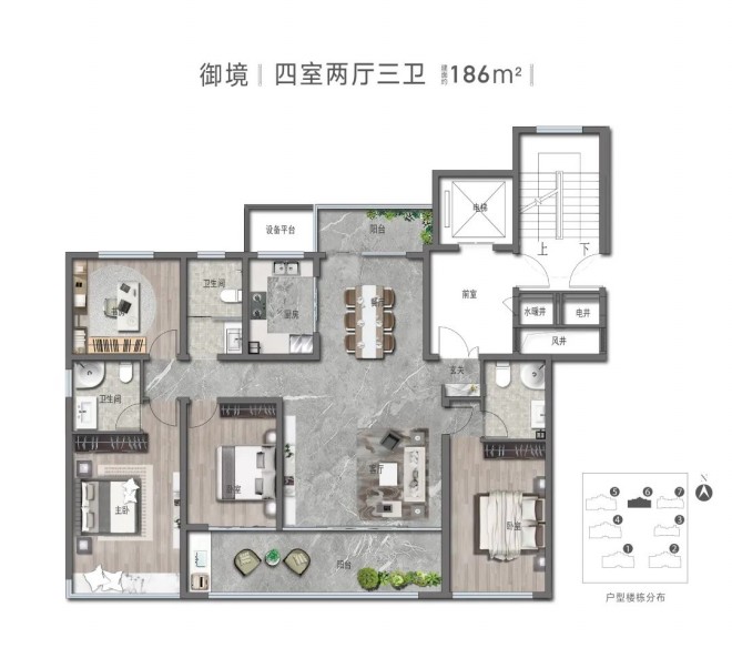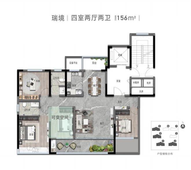 當舒闊空間感與私人領域感成為改善住宅的顯著優勢,信華啟元積極擴增配套空間和戶型空間尺度。打造地上地下雙精裝大堂——約 6 米挑空的地上大堂與約4.2米層高的高闊車庫,以及兩梯兩戶或一梯一戶的奢闊歸家動線布局,營造出尊崇歸家儀式感。戶型面積更是闊尺升級,打造建筑面積約156㎡、176㎡、186㎡的四室兩廳寬朗舒居,拓寬生活空間。