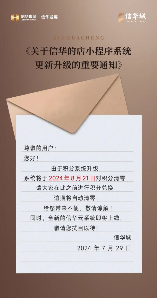 重要通知-積分系統信華的店系統升級即將關閉