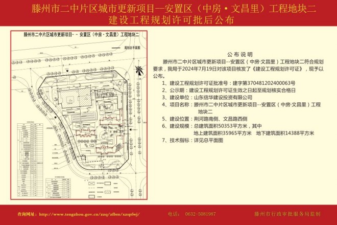 滕州市二中片區城市更新項目安置區工程地塊二建設建設工程規劃許可批后公布