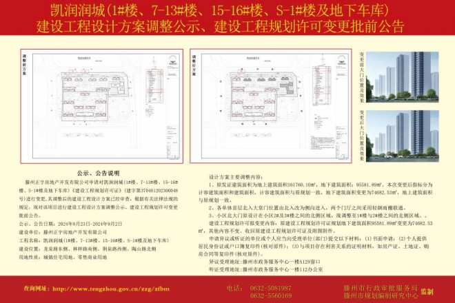 凱潤潤城建設工程設計方案調整公示、建設工程規劃許可變更批前公告