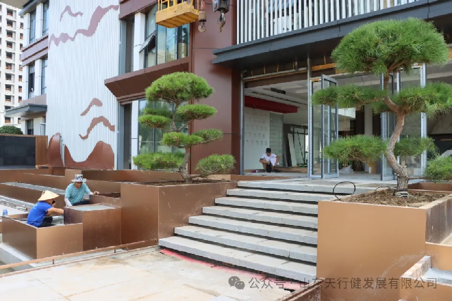 在江山麗城項目營銷中心的施工現場,一派繁忙而有序的景象映入眼簾。目前售樓處的內部裝修和景觀施工已進入收尾階段。售樓處內部硬裝已基本完成,沙盤也已經制作完成等待現場安裝。外部景觀的苗木栽種、水系清理正在進行。整體效果已初步成形,為呈現完美細節,各項施工正在加緊步伐。