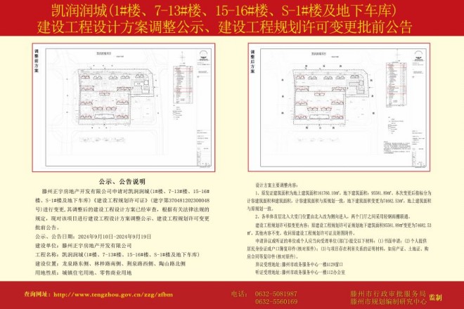 凱潤潤城建設工程設計方案調整公示、建設工程規劃許可變更批前公告