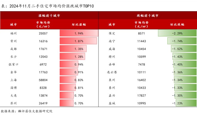 從環比漲幅前十城市看,福州、常州和成都位居漲幅前三位,環比分別上漲1.94%、1.87%和1.35%。