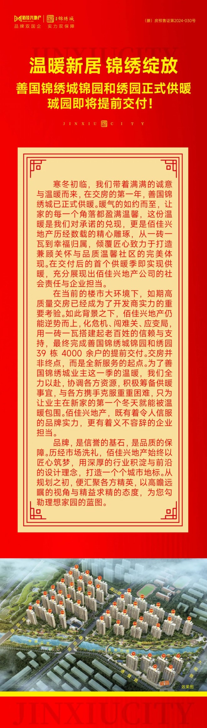 善國錦繡城首年交付即供暖,珹園即將提前交付