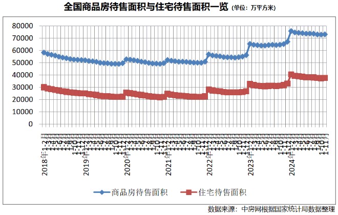 此外,在庫存方面,商品房待售面積有所上升。截至11月末,商品房待售面積73286萬平方米,同比增長12.1%。其中,住宅待售面積為37652萬平方米,同比增長18.4%。