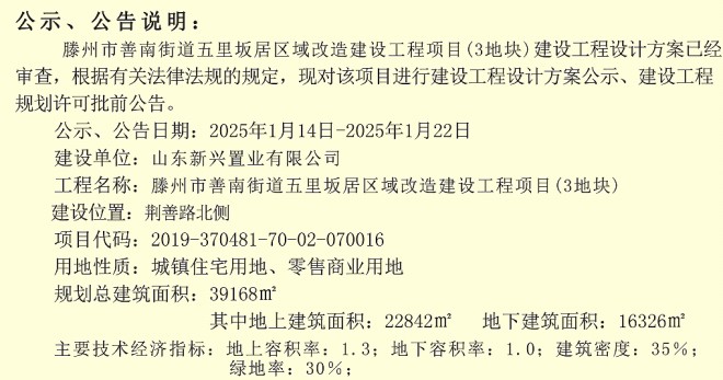 五里坂居區域改造建設工程項目(3地塊)建設工程設計方案公示、建設工程規劃許可批前公告