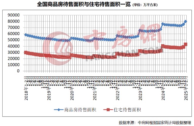 數據顯示,1-2月份房地產開發企業房屋施工面積605972萬平方米,同比下降9.1%。其中,住宅施工面積421351萬平方米,下降9.7%。房屋新開工面積6614萬平方米,下降29.6%。其中,住宅新開工面積4821萬平方米,下降28.9%。房屋竣工面積8764萬平方米,下降15.6%。其中,住宅竣工面積6328萬平方米,下降17.7%。