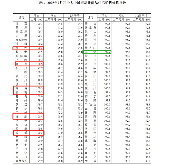 3月17日,國家統計局公布2025年2月份70個大中城市商品住宅銷售價格變動情況。
