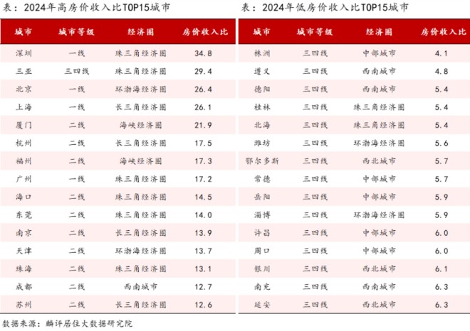 具體到城市,深圳2024年房價收入比為34.8,高居首位,其具有新增住宅用地稀缺以及毗鄰香港等優勢,房產價值高,房價長期處于高位,但房價水平與收入增長并不匹配,居民購房仍存在較大壓力。