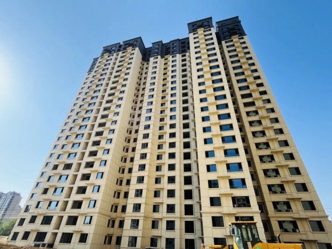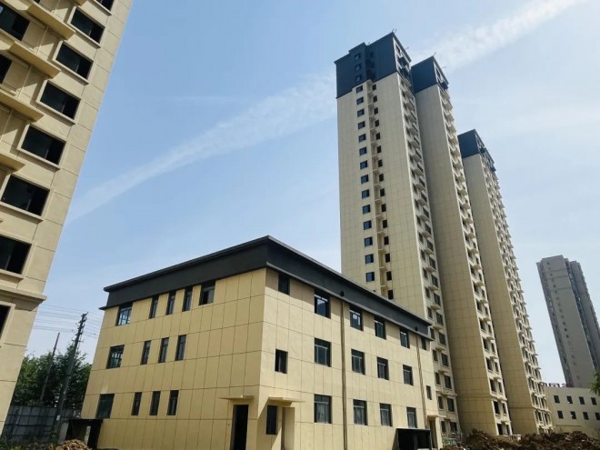 4#樓,內外墻砌筑施工完成,內墻抹灰完成,屋面工程施工完成,外墻抹灰施工完成,窗戶安裝完成,外立面施工完成,室內消防完成90%。