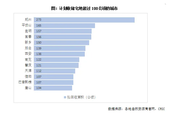 具體到各城市收儲規模來看,目前擬收儲規模超過100公頃的有13個城市。其中包括鄭州、昆明、西安和天津4個二線城市,另外還有平頂山、宜春、新鄉、邢臺、南充、肇慶、信陽、巴音郭楞和唐山等三四線城市。